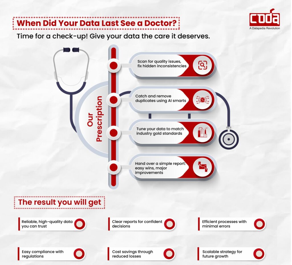 - Leverage PROSOL’s AI-driven data profiling engine to automatically highlight duplicates, missing attributes, and incorrect classifications.